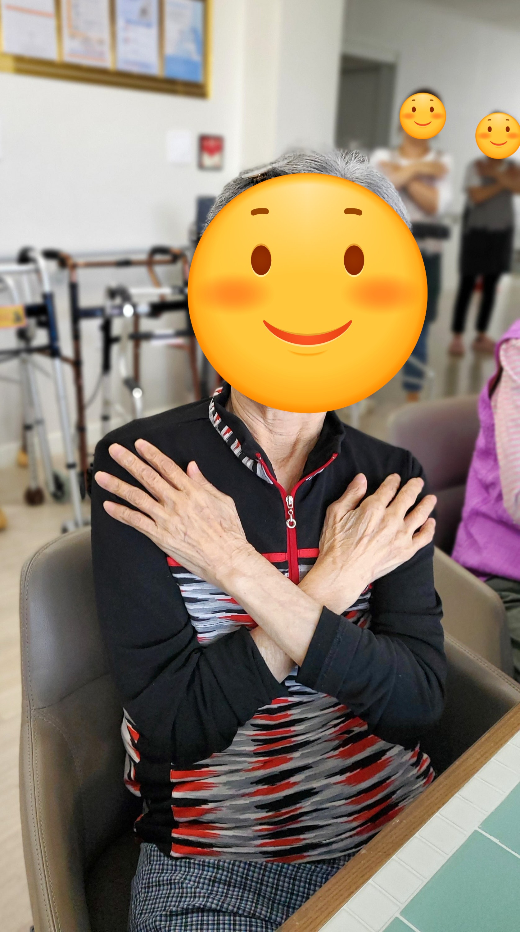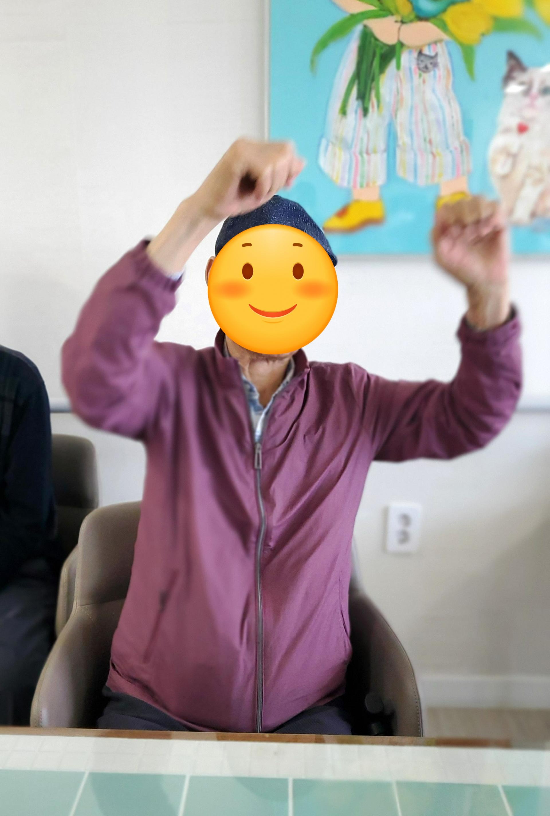 강사의 동작을 보며 어르신께서 열심히 체조를 따라하신 후